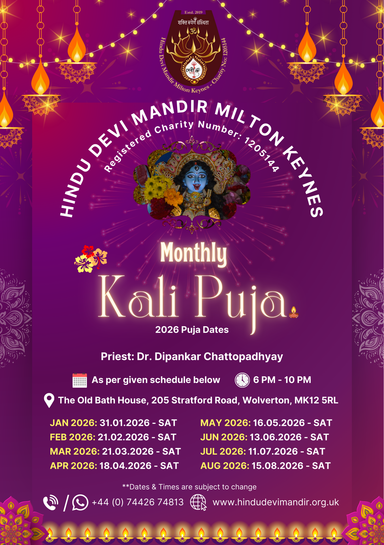 We are organising our 4th Annual Maha Kali Puja & Diwali Celebrations on 18th October 2025 from 5 PM to 9:30 PM.